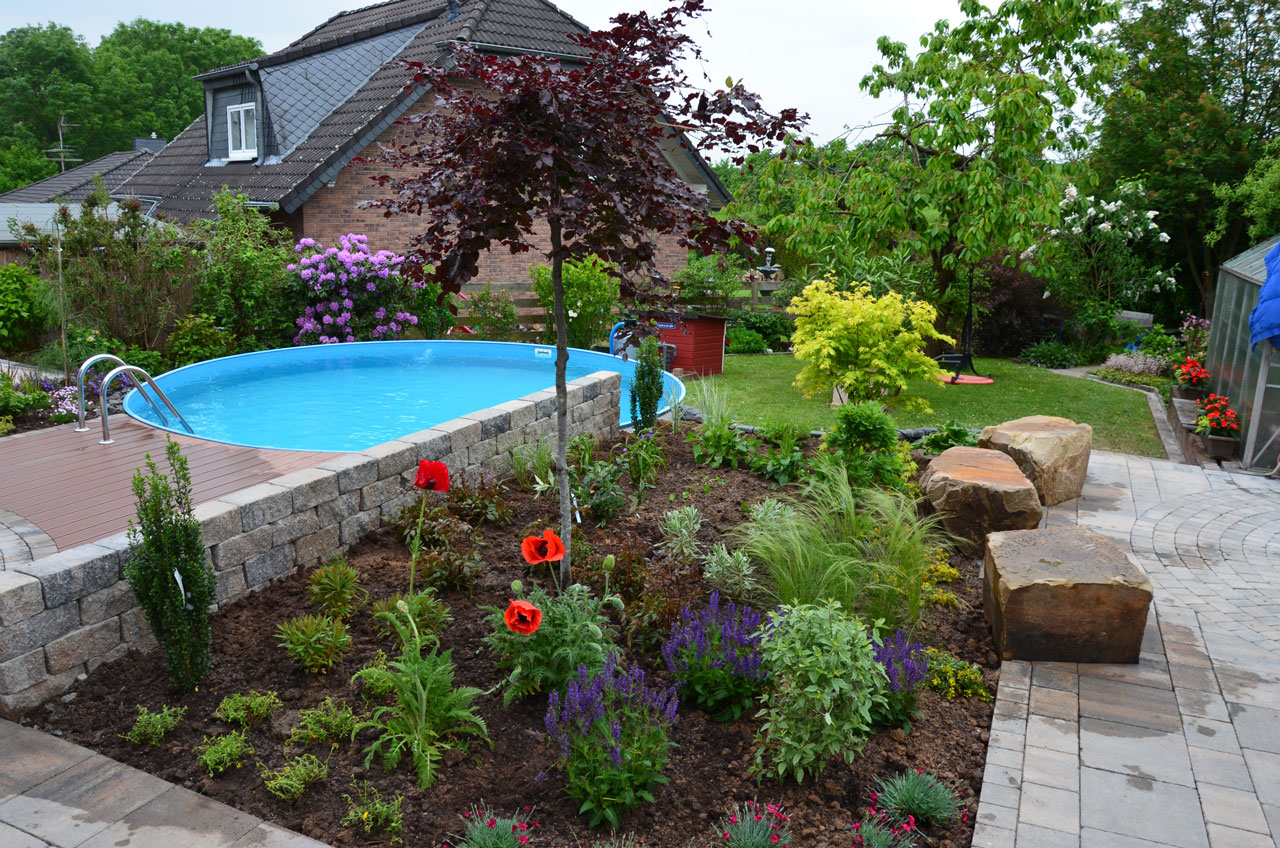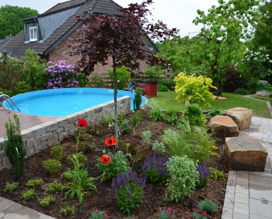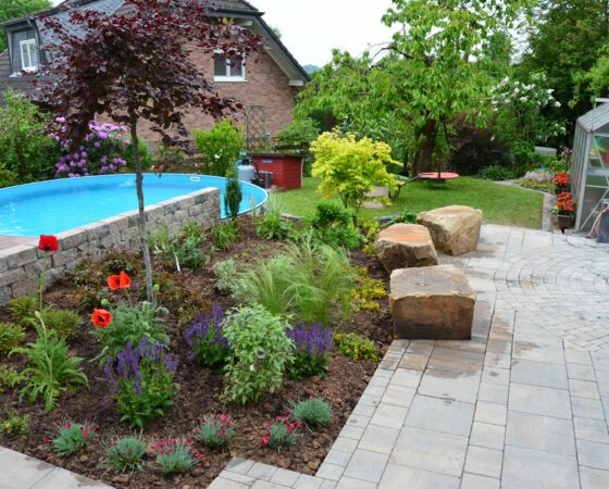 In die Jahre gekommen war er. Es musste einfach etwas Pep in den Garten. Der Pool sollte bleiben, die Terrasse modern und mit genügend Platz für Besuch.