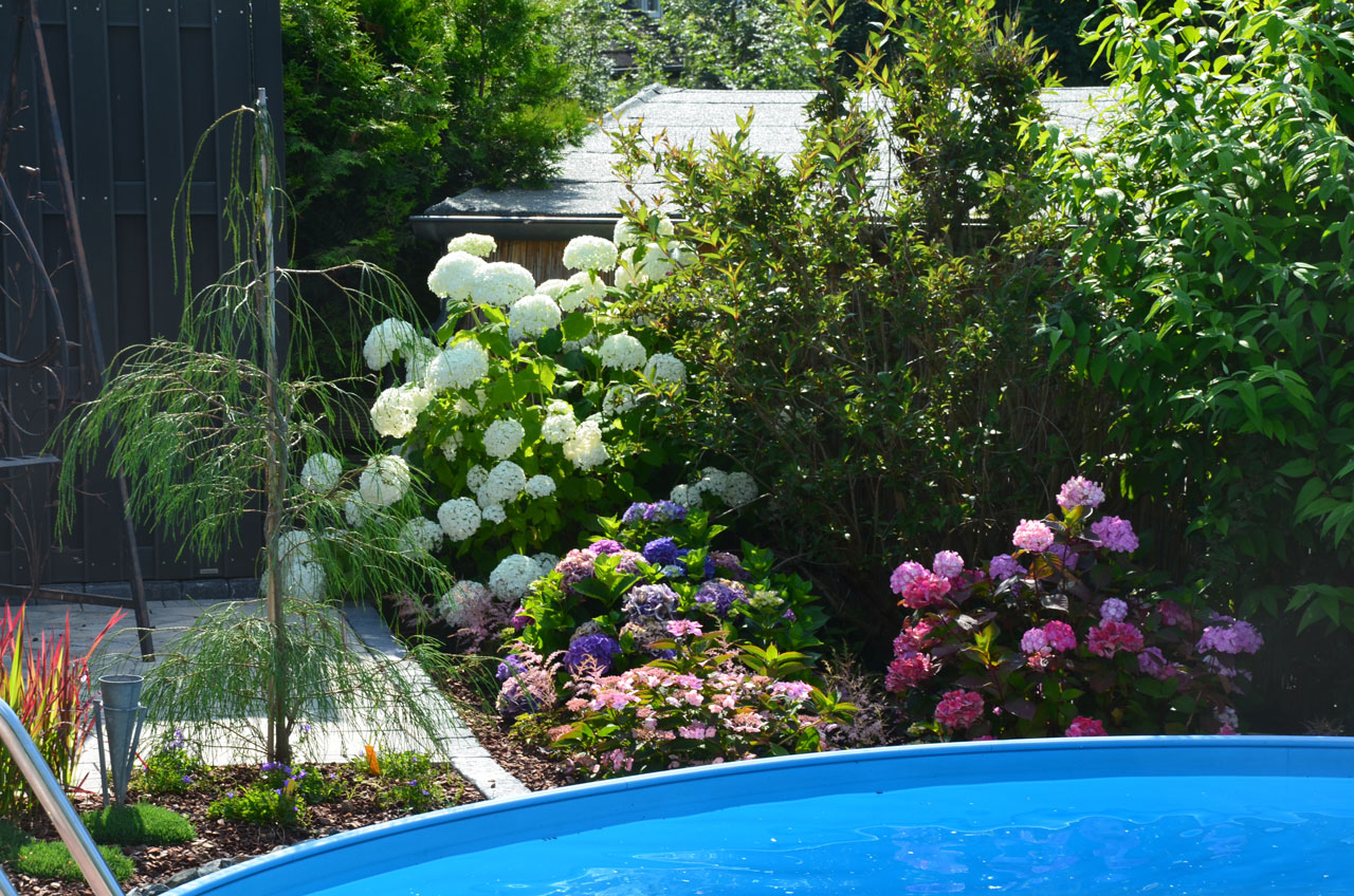 In die Jahre gekommen war er. Es musste einfach etwas Pep in den Garten. Der Pool sollte bleiben, die Terrasse modern und mit genügend Platz für Besuch.